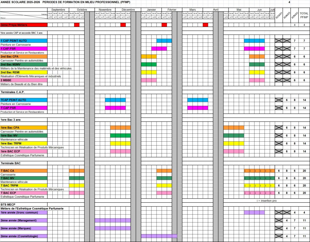 Ci dessous vous trouverez les dates de PFMP.