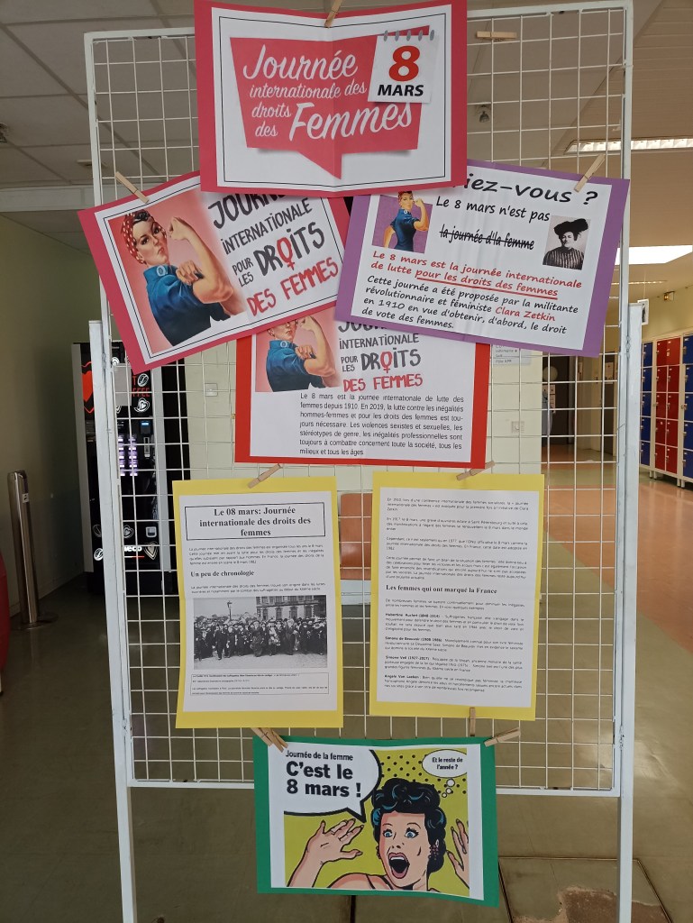 En effet, les élèves ont pu prendre connaissance du travail réalisé par Madame LE SAGER (CPE) et par les élèves élus au Conseil de Vie Lycéenne (CVL). Le contenu de cette première exposition était le suivant: